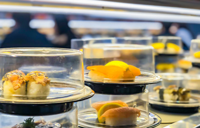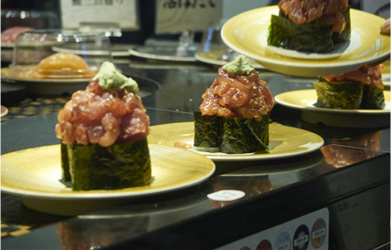 회전초밥의 디스플레이의 마지막 마감은 LED입니다.